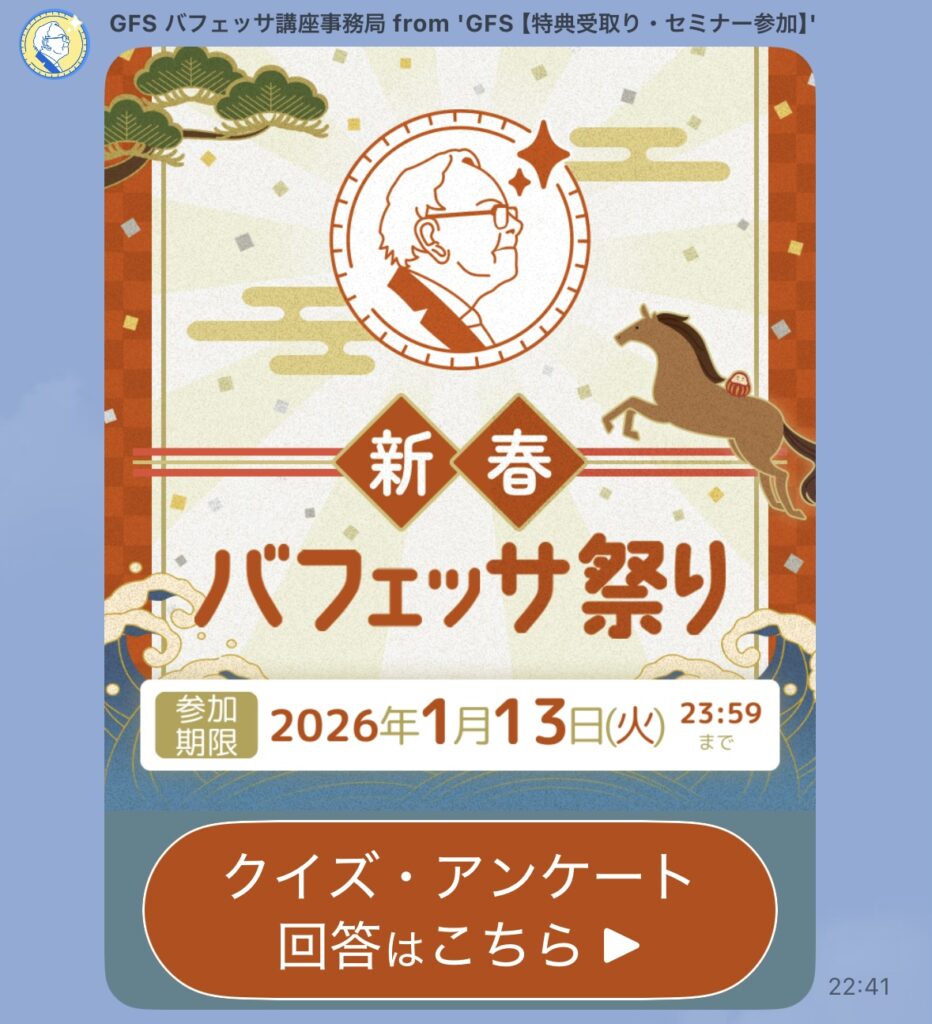 このページ内にあるリンクからバフェッサを見て最後のクイズまで回答してくれた人限定!