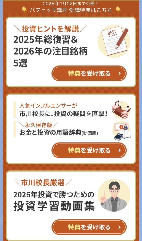 バフェッサは、GFS(グローバル・ファイナンシャル・スクール)が運営している投資学習講座だよ。すでに30万人以上が受講していて、日本一の投資スクールなんだ。