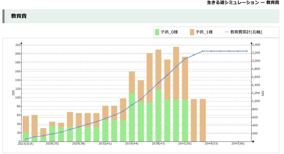 ↑こんな感じで教育費や収支のバランスをグラフにしてくれたよ。